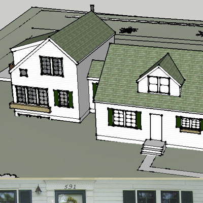 There comes a time when a perfectly lovely, extremely adaptable, and very special house with a family history going back nearly 75 years, on land with family history back over one hundred years, is ready for some more. As our own family is growing in many directions, and our tie to our home (working from home, schooling our children from home, offering hospitality in our home) is increasing, we are taking the plunge and designing and building an addition to our own home to make Room for More. The model image above shows our existing house on the right, and the addition on the left. We are seeking to keep the original house completely intact and distinct from the addition, and yet tie the two together at a variety of levels - scale, window type, colors, trim details, roof pitch, as well as a few surprising touches to give it some spark of its own.